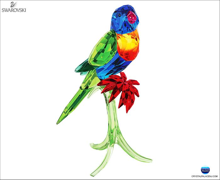 | Exquisite craftsmanship. Inspired by the tropical rainforest, this timeless parrot design is created exclusively in crystal. The Rainbow Lorikeet sparkles in a beautiful array of colors, with a total of 655 facets, on a green crystal stand. The breast displays a gradient color that differs from one item to another, making each piece unique. Designer: Heinz Tabertshofer - Item# 5136832 - Size: 5 3/4 x 2 5/8 x 3 1/2 inch - Made in Austria |