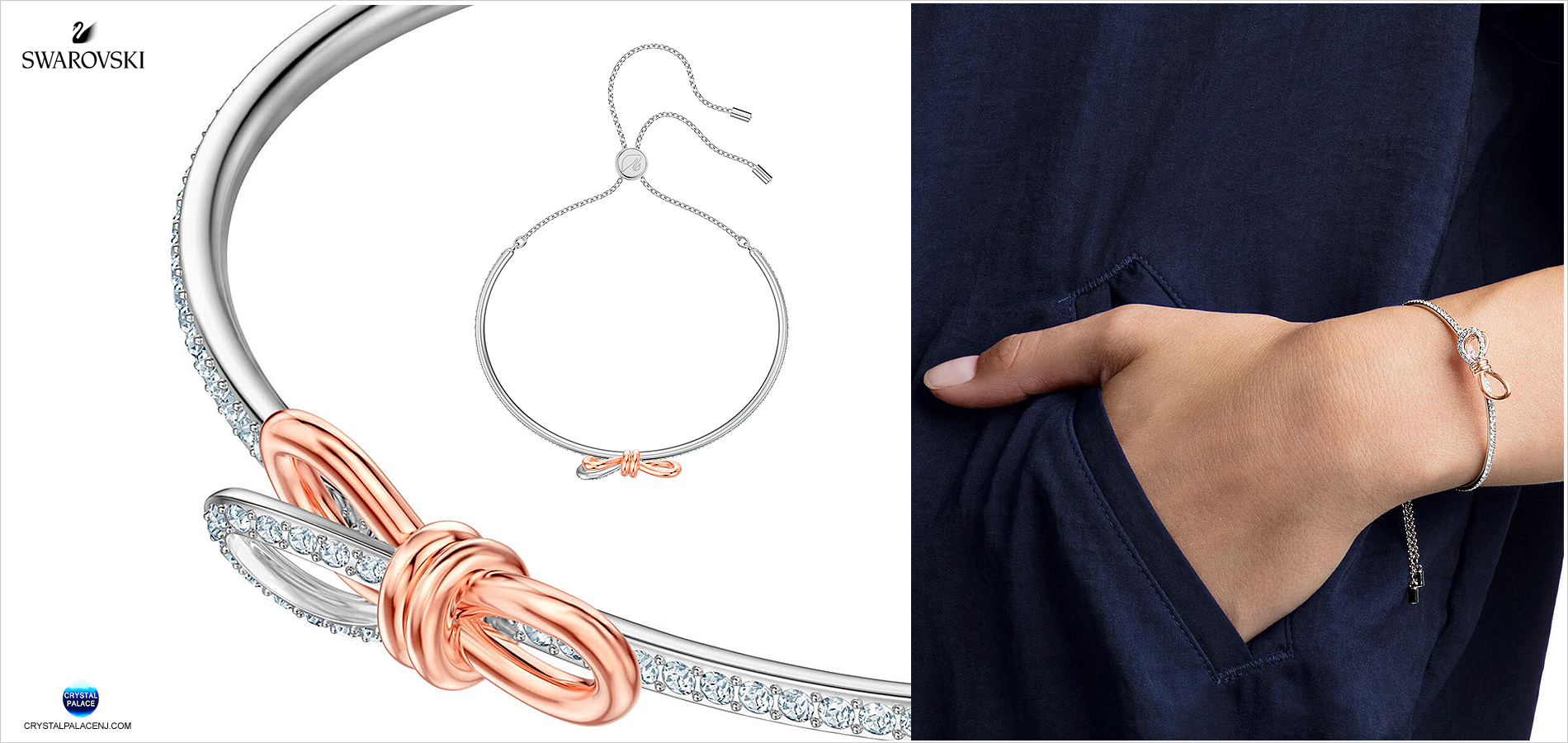 Swarovski Lifelong Bow Bangle, White, Mixed plating